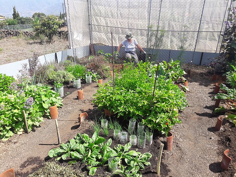 Por desgracia, no sólo nuestra casa, sino también la escuela de cocina fue destruida por el volcán. No sólo echamos de menos nuestra finca, sino también los maravillosos momentos que pasamos cocinando junto a vosotros. Recordamos con melancolía las horas creativas en la gran cocina. Qué bonito era cosechar las verduras frescas de nuestro huerto con nuestros huéspedes y cocinar juntos una deliciosa comida vegetariana. Nunca olvidaremos las agradables horas que pasamos comiendo con todos los participantes del curso en nuestra terraza o en el invernadero.